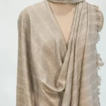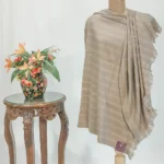 A Shawl is the most beautiful thing ever invented to wear. A versatile piece of art with alluring embroidery. This Beige Striped Ladakhi Pashmina Shawl will embrace your beauty in every way, as Kashmiri Shawls are highly praised for their Fine Pashmina Wool, Skilled Weaving, and Embroidery by Master Craftsmen of Kashmir.