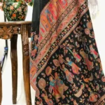 A Marvellous Sari whose praise is being sung far beyond our borders and which you can wear at any party or a wedding. Stand out with our Black Modal Silk Kani Saree with Indian Tribal Figures Pallu Design.