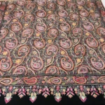 Addition of a Shawl to whatever you wear is a great way to dress up a plain outfit. This unblemished beauteousness of Silk Thread Aari detailing will makes you look elegant and special. This Black Natural Fine Wool Shawl with Silk Thread Aari Machine Embroidery with Abstract design is a pure symbol of royalty.