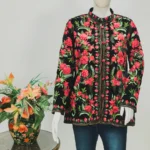 Never fading, timeless traditional Black Short Jacket with Rich Floral Embroidery will make you look trendy and stylish no matter what. Pair it up with denim, skirt, trouser, or even a flowing dress to evoke chic in you.