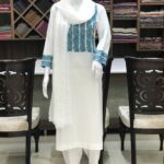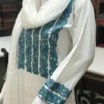 A stunningly fabulous Indian Ethnic Embroidered Shalwar Suit, which you can wear on any occasion and receive many compliments. This Cotton Suit with Stripes Embroidered Neck knows how to wow!