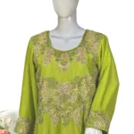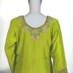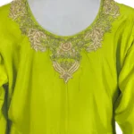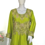 Tradition contributes to a sense of comfort and belonging. Traditional attire is itself a Beauty. Nothing can match a women’s sheer elegance when she is in her traditional attire. This Green Crepe Silk Salwar Suit with Dabka Thread French Knot Hand Embroidery and Organza Dupatta is ideal for any function or gathering.