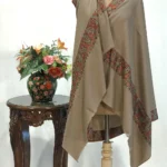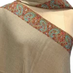 Put on the garment of praise, a versatile piece of art with alluring Sozni embroidery. This Natural Brown Pure Pashmina Shawl with Sozni Hand Embroidery will embrace your beauty in every way, as Kashmiri shawls are highly praised for their Fine Pashmina Wool, skilled weaving and embroidery by master artisans of Kashmir.