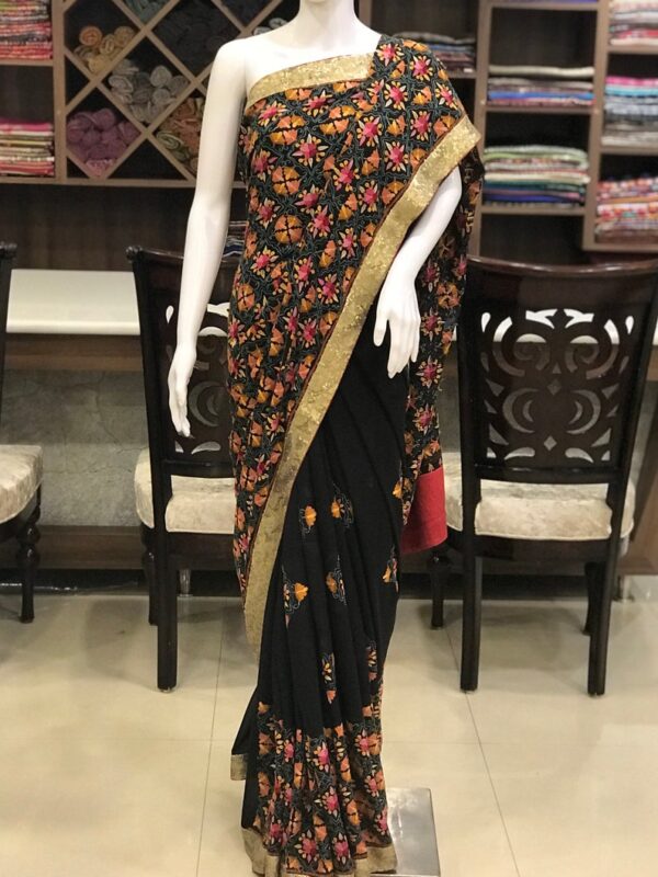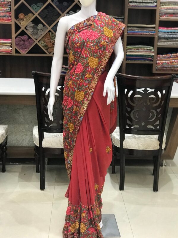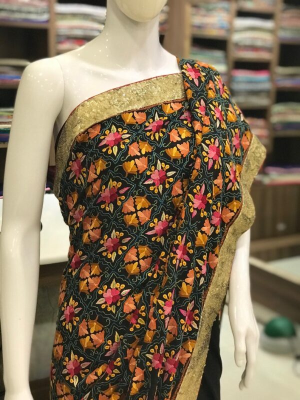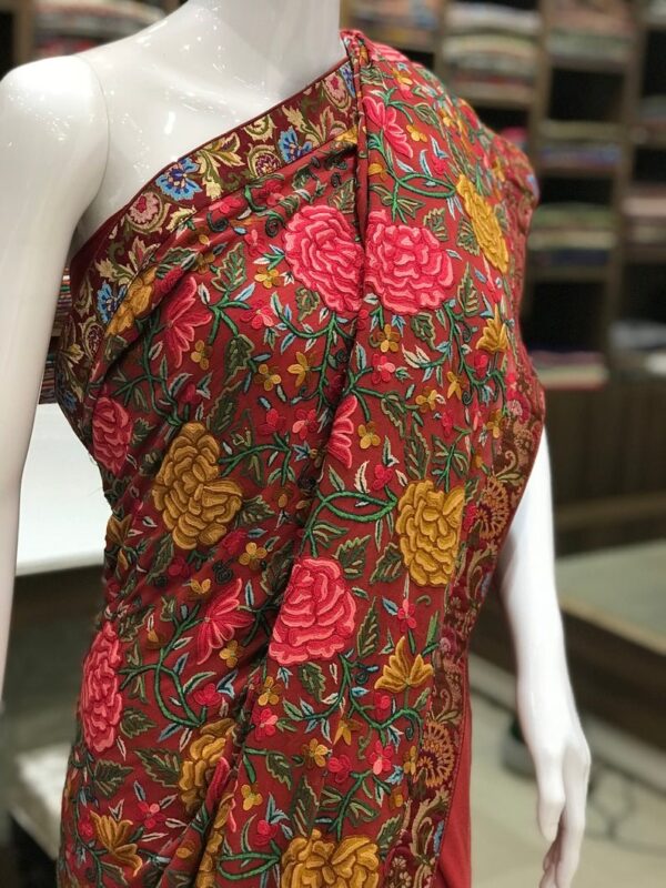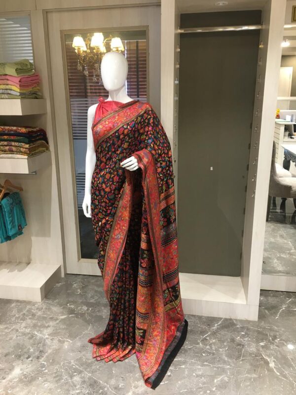 Imagine a breathtaking heirloom passed down through generations, brought to life with the masterful touch of a Kashmiri designer house. The ‘Jahanara’ saree is a tapestry of tradition and innovation, a captivating blend of exquisite craftsmanship and contemporary elegance.