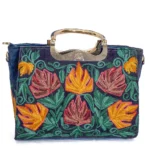 This lightweight handbag with its spacious interior is perfect for daily use or special occasions. The floral Aari work pattern adds a touch of elegance and sophistication. The two handles give you a comfortable grip to hold and it is easy to carry. Our Navy Blue Kashmiri Aari Embroidered Women Hand Bag is the perfect accessory to complete your look. Buy yours today and add a touch of luxury and style to your wardrobe!
