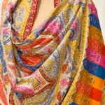 Put on the garment of Praise. We are giving out a versatile piece of art enhancing alluring Kalamkari & Sozni embroidery. This Multi-Colour Pure Pashmina Shawl with Kalamkari Hand Embroidery will embrace your beauty, as Kashmiri shawls are highly praised for their Fine Pashmina Wool, skilled weaving and embroidery by master artisans of Kashmir.