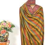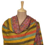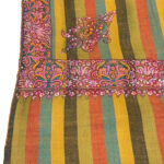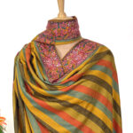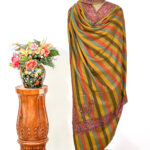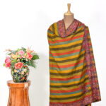 Put on the garment of Praise. We are giving out a versatile piece of art enhancing alluring Sozni embroidery. This Mustard Striped Pure Pashmina Shawl with Sozni Hand-Embroidery will embrace your beauty in every way, as Kashmiri shawls are highly praised for their Fine Pashmina Wool, skilled weaving and embroidery by master artisans of Kashmir.