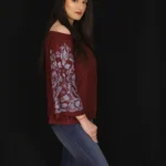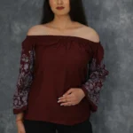 Indulge in effortless elegance with our Embroidered Sleeves Off-Shoulder Top. Featuring intricate embroidery along the sleeves, this chic and versatile top adds a touch of chic charm to any ensemble. The off-shoulder design exudes feminine allure while ensuring comfort and style for any occasion.