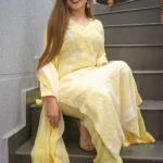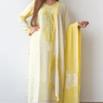 A stunningly fabulous Indian Ethnic Embroidered Shalwar Suit, which you can wear on any occasion and receive many compliments. This Off-White and Yellow Salwar Suit with Kashmiri Embroidery knows how to wow!
