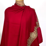 Wrap yourself in the timeless allure of Kashmiri Stoles. This Red Pure Pashmina Tilla Hand Embroidered Stole is a masterpiece, blending tradition and modernity flawlessly. It exudes regal elegance and embraces your beauty in every way possible.