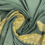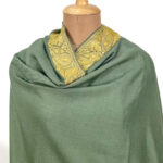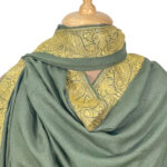 Kashmiri Shawls are timeless. Looks like Royalty, and feels like a masterpiece. This elegant piece is carefully curated keeping in mind the rich traditional heritage of Indian Arts. Each piece is meticulously designed to alchemize tradition in a way that finds a well-deserved place in a modern wardrobe. This Sage Green Pure Pashmina Shawl With Tilla Hand Embroidery inspired by royalty will embrace your beauty in every way.