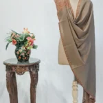 Textured Beige Soft Fine Wool Shawl with Sozni Hand Embroidery