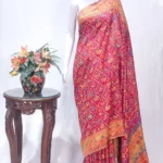 A Marvellous Sari whose praise is being sung far beyond our borders and which you can wear at any party or a wedding. Stand out with our Yellow and Pink Modal Silk Kani Saree with Geometrical Design